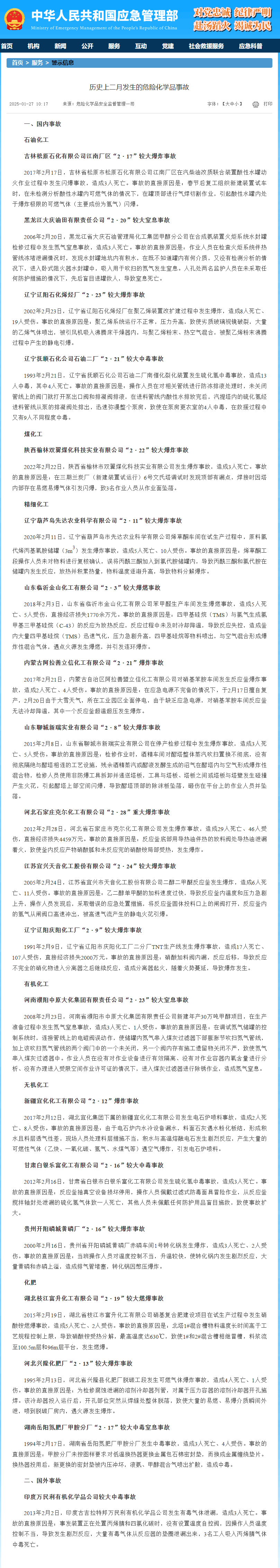 各位擁有危險化學品經營許可證的老板,今天我們來聊一聊歷年來2月份,發生過的?;分卮笫鹿拾咐?,這些事故均是來自于,應急管理部官網。