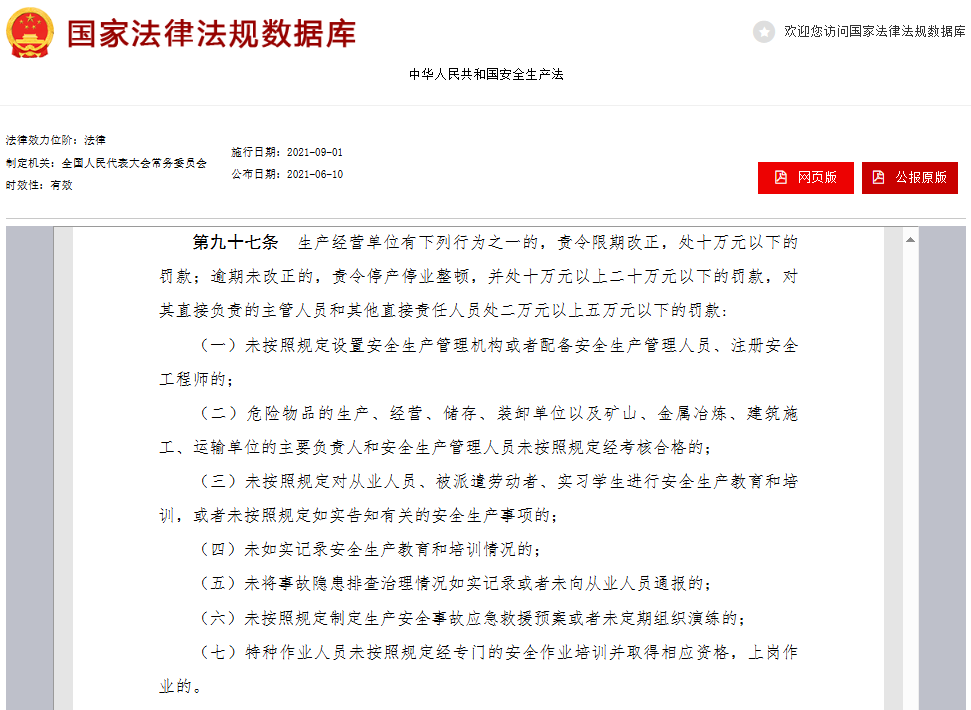 另外有想要詳細了解處罰信息的,可以參考《安全生產法》第九十七條。
